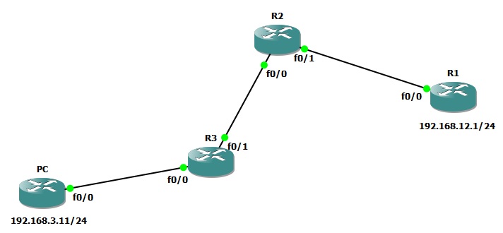 بعد از اینکه IP ها و ارتباطات بین این دستگاه ها را فعال کردیم دستورات زیر را روی روتر R1 می زنیم: