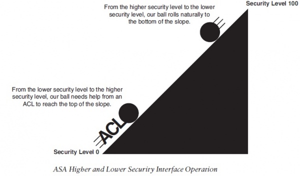 - نکته : اگر دو اینترفیس دارای Security Level برابر باشند به صورت پیش فرض بین آنها ترافیک اجازه عبور ندارد.